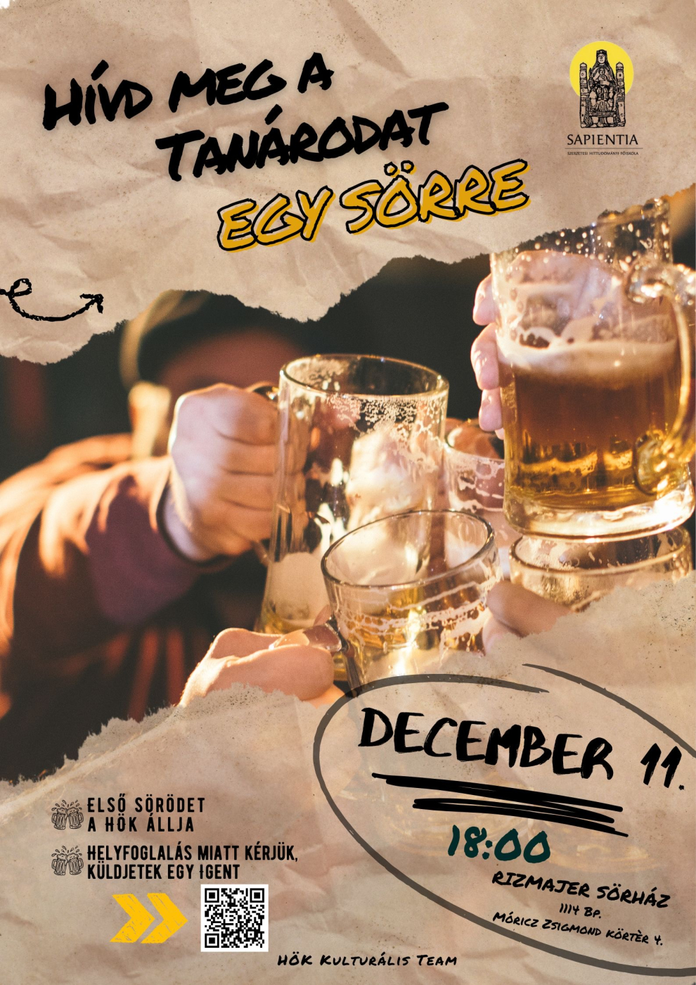 December 11-én várunk titeket a Rizmajer Sörházba (1114, Budapest, Móricz Zsigmond körtér 4) 18.00- kifulladásig.