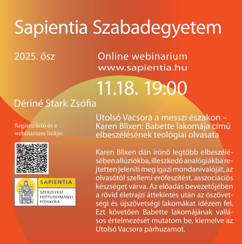 Sapientia szabadegyetem Időpont 2025. nov. 18., kedd, 19:00–20:30 Helyszín Online webinarium: https://events.teams.microsoft.com/event/d547d48a-d873-4871-9ca7-9696a0bfaa4b@14ca43ea-d100-4d42-9615-6df1d0ce2884 Dériné Stark Zsófia előadása Címke Sapientia Szabadegyetem
