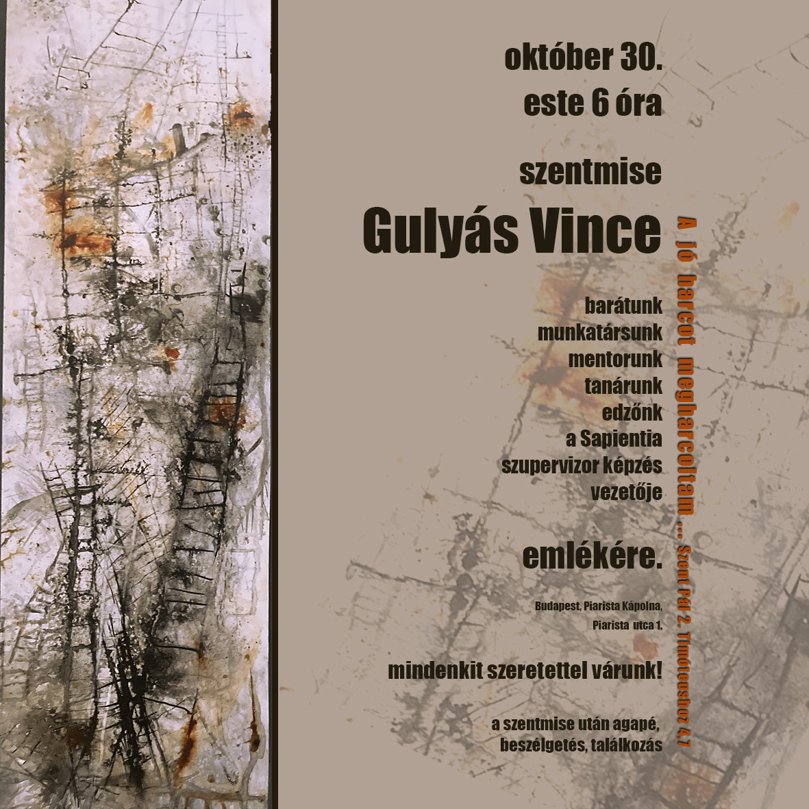 Szeretettel várunk mindenkit, aki velünk együtt búcsúzna szentmisével Gulyás Vincétől.