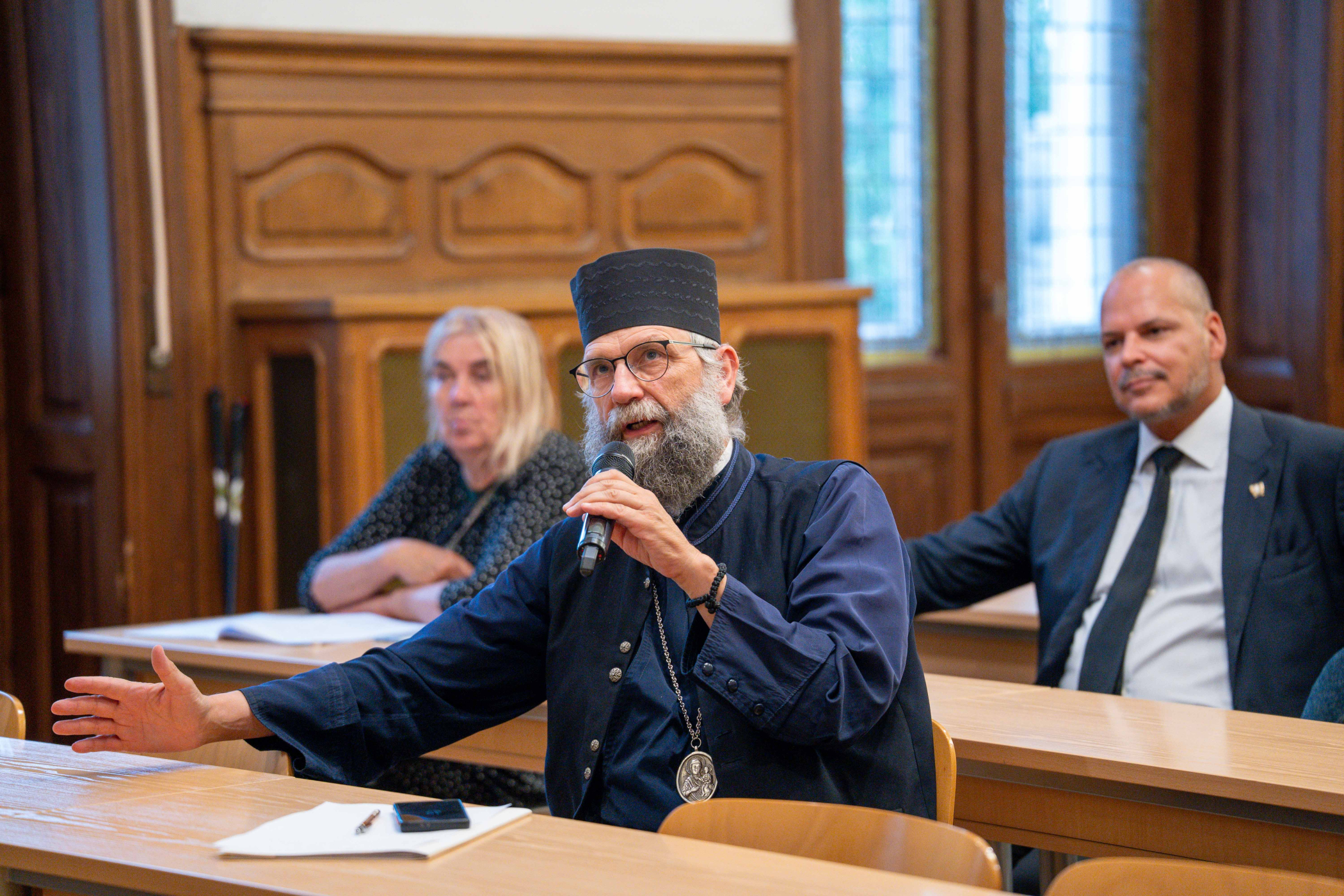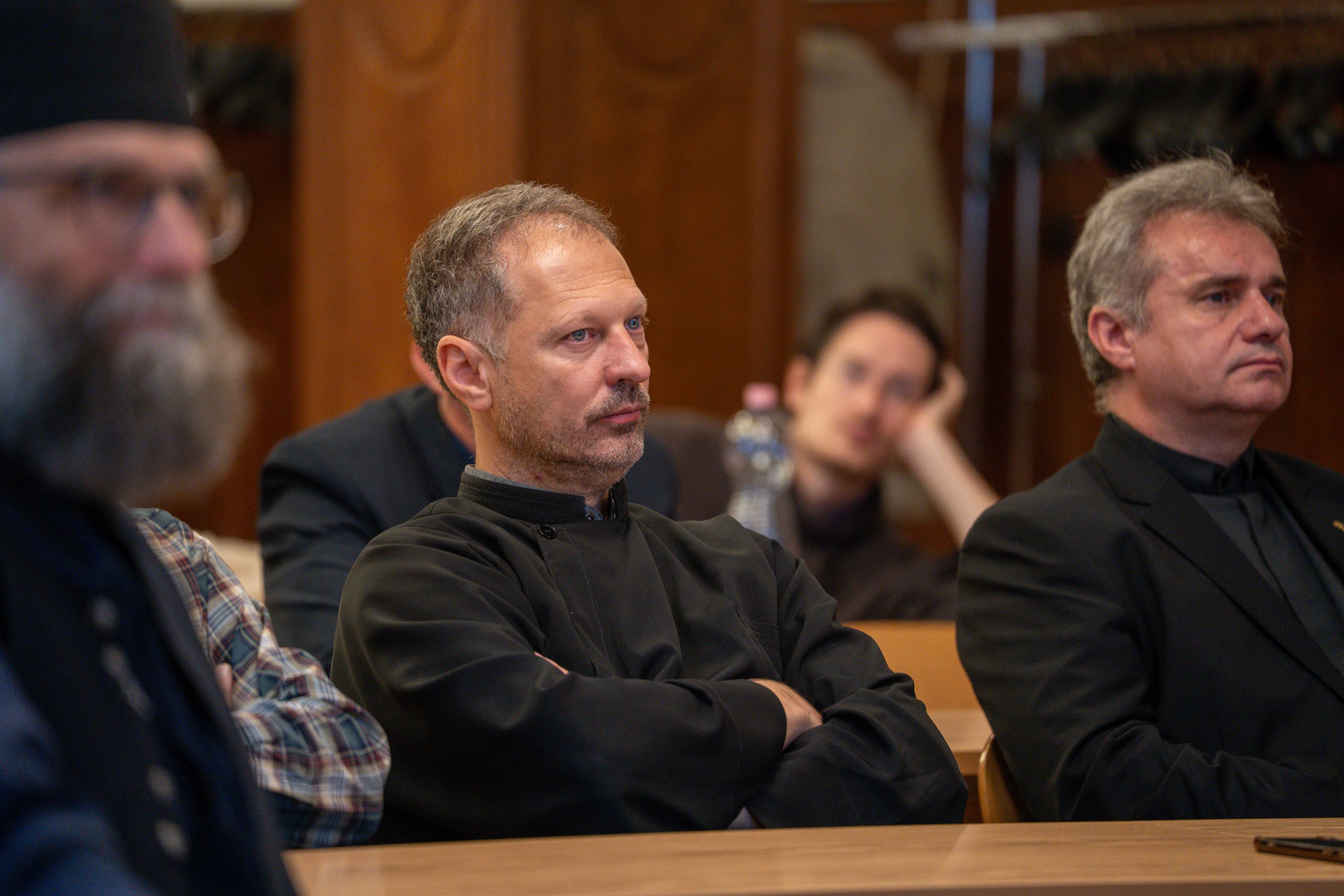 Job (Jób) metropolitát Kocsis Fülöp érsek-metropolita köszöntötte a Sapientia dísztermében, ahol a főiskola oktatói, hallgatói, valamint számos más érdeklődő foglalt helyet. A moderátor és tolmács szerepét Görföl Tibor teológus töltötte be, aki Job Getcha e témában írt egyik tanulmányát is magyar nyelvre fordította a Bencés kiadó Az első egyetemes zsinat című kötetében.