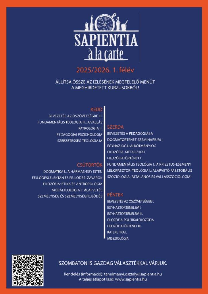 A Sapientia „étlap” alapján – érdeklődés és életritmus szerint – lehet egyfogásos, kétfogásos, vagy akár többfogásos menüt rendelni a meghirdetett nappali és/vagy esti tagozatos kurzusokból.