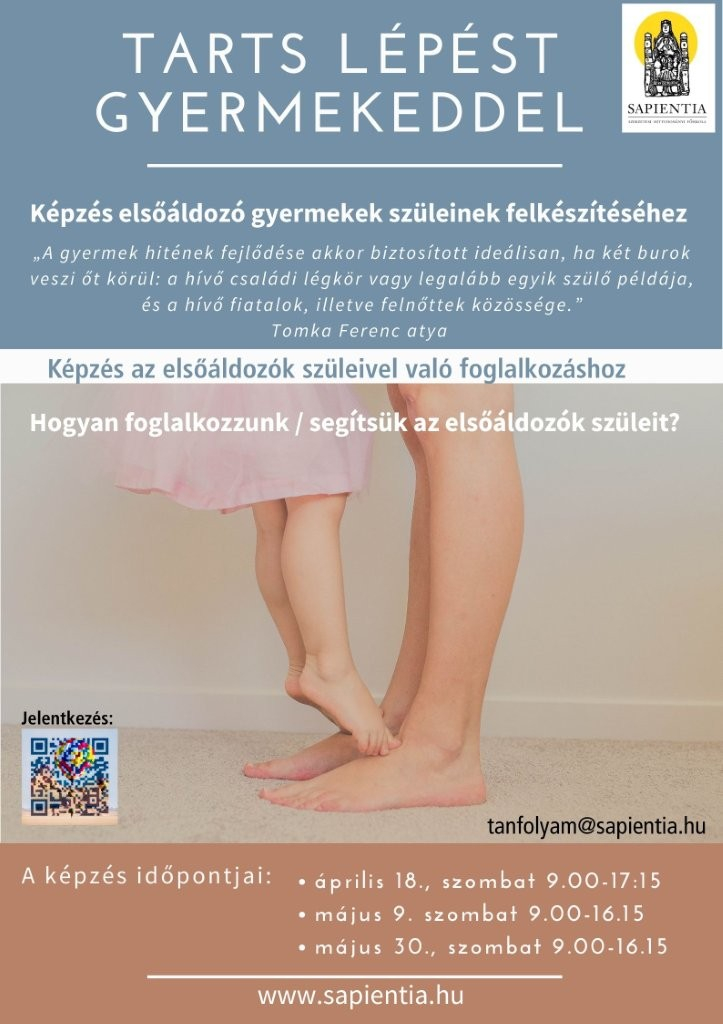 A szentség felvétele után a gyerekek többsége lemorzsolódik, mert nincs gyakorló hívő háttere. Főiskolánk éppen ezért hozta létre a Tarts lépést gyermekeddel című 25 órás tanfolyamot, melynek célja, hogy az elsőáldozók szüleivel is szakértő módon tudjanak foglalkozni a plébániák.