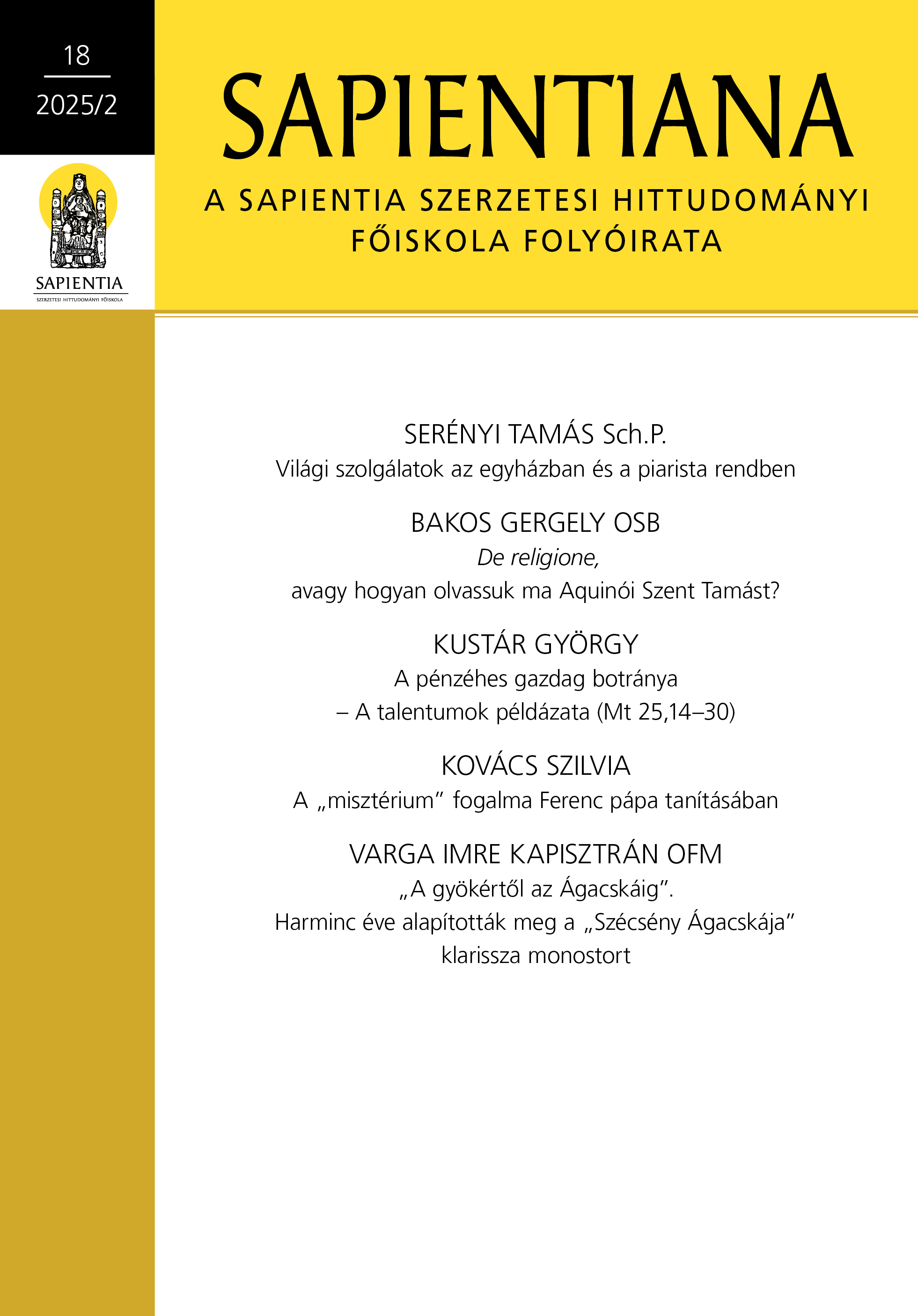 VARGA IMRE KAPISZTRÁN: „A gyökértől az Ágacskáig”. Harminc éve alapították meg a „Szécsény Ágacskája” klarissza monostort = “From the Root to the Twig” – The Thirtieth Anniversary of the Foundation of the Clarissan Monastery “Le Rameau de Szécsény”. doi: 10.52992/SAP.2025.18.2.95