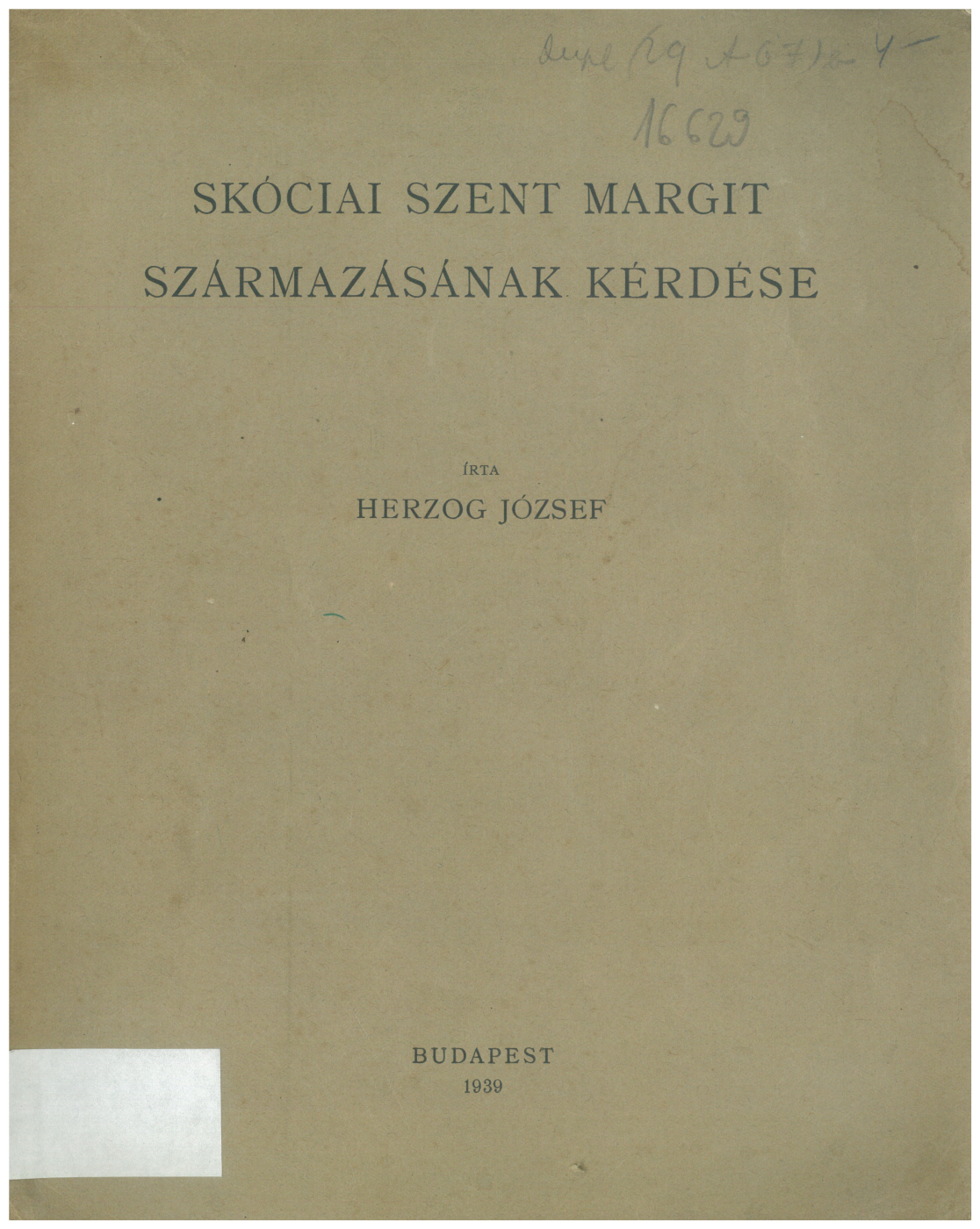 Herzog József: Skóciai Szent Margit származásának kérdése, Herzog József, Budapest, 1939. ÉL272H64